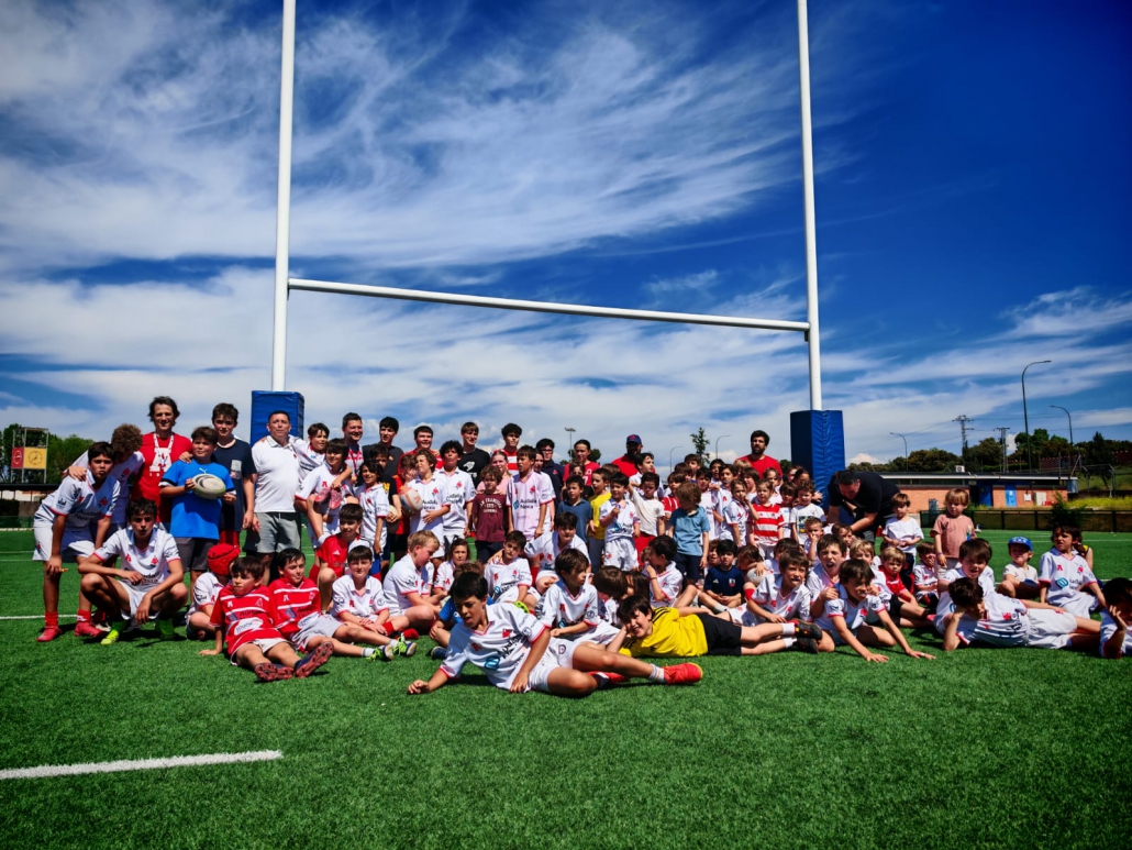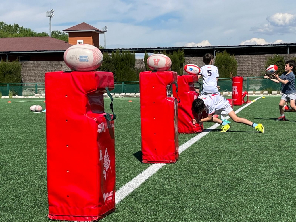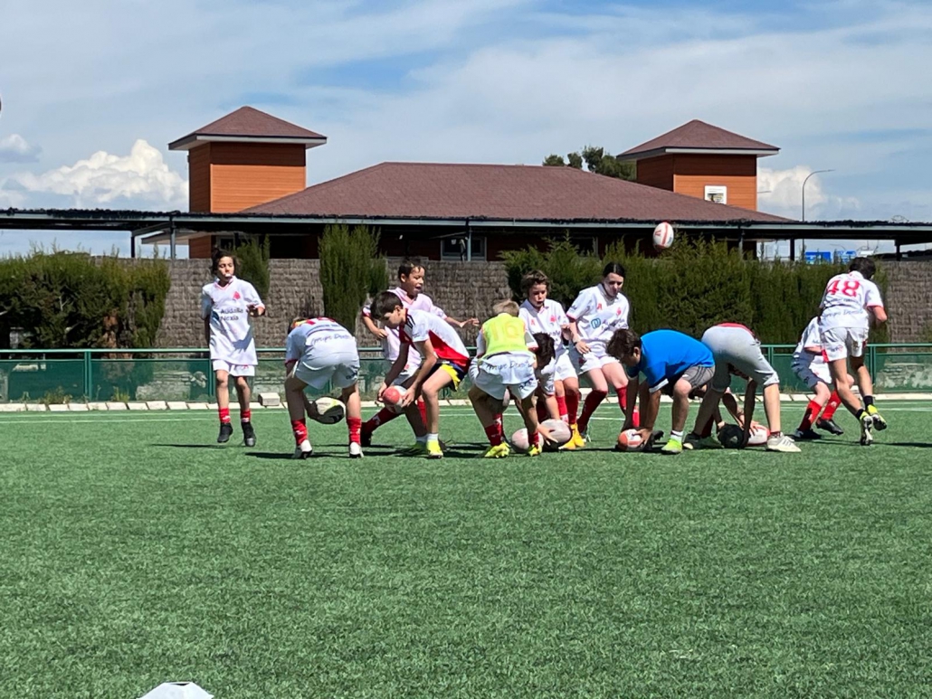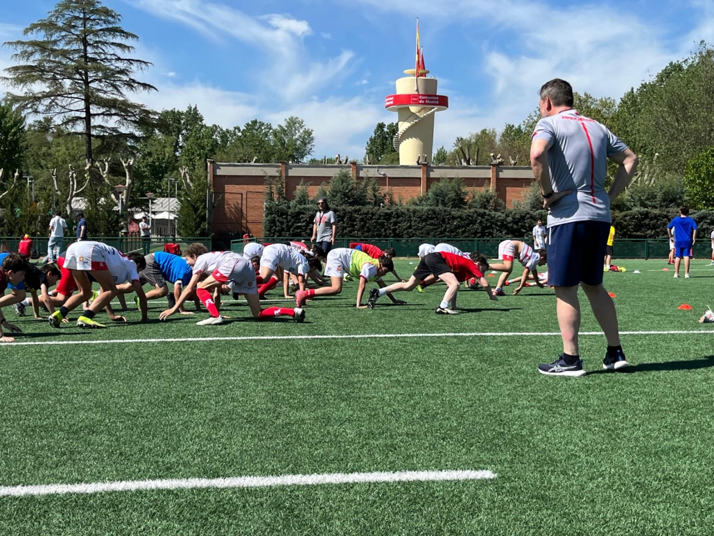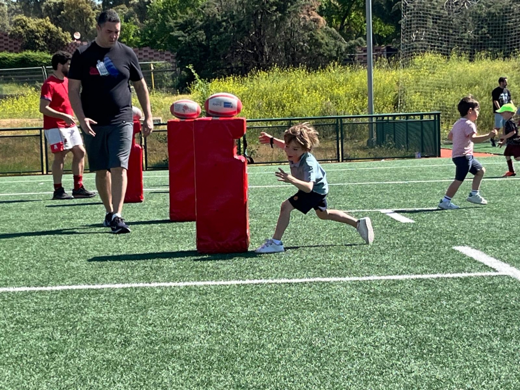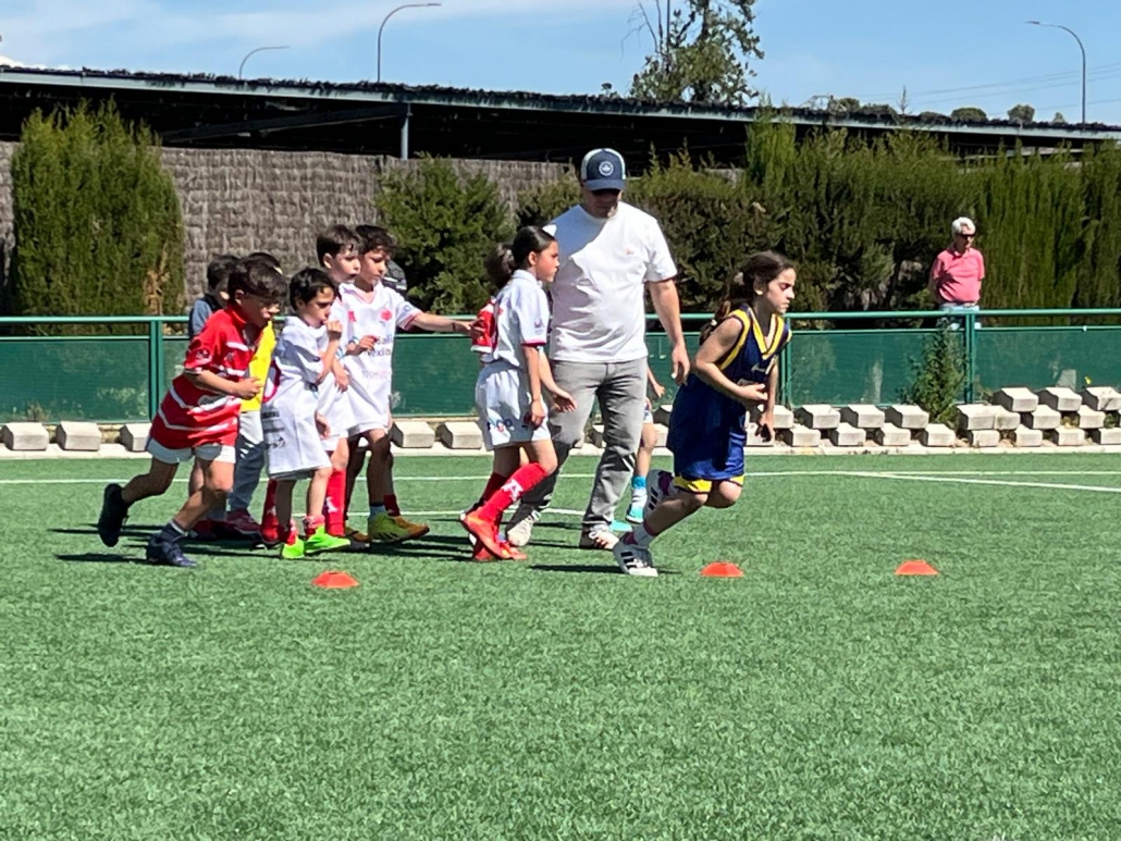 A medida que avanzaba la mañana, la temperatura se iba templando y en los rostros de los nuevos participantes comenzaban a dibujarse sonrisas. Los niños empezaban a disfrutar de forma más relajada, incluso durante ejercicios como el placaje a sacos de espuma,la diversión alcanzó niveles muy altos.