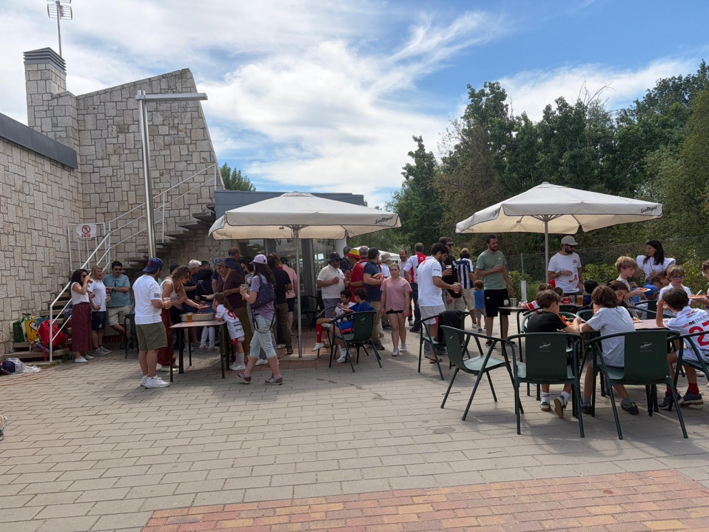 Quienes pudieron quedarse más tiempo disfrutaron después de una agradable reunión; al rededor de un grifo de cerveza 🍺 los adultos, y delante de un plato de macarrones con tomate, los niños.